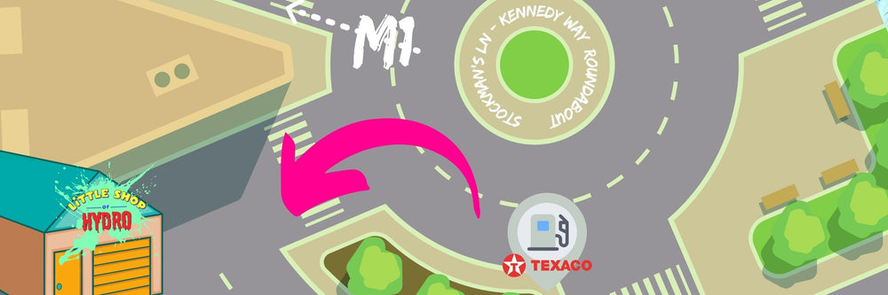 • banner showing cartoon map of stockman's lane roundabout with new unit at first exit from Malone road