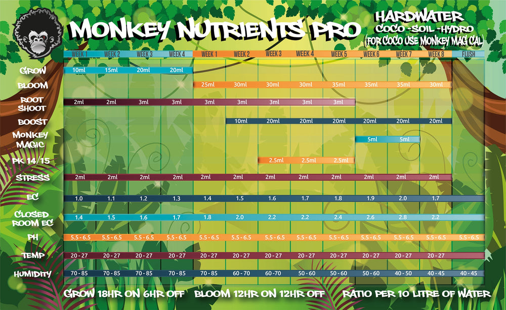 Phosphorus (P) and potassium (K) are included in Monkey PK 14/15. Flower production and flavor-enhancing PK levels are boosted by this product, which has been specifically designed for this purpose. In the early stages of bloom, a PK boost directs photosynthetic energy toward the tips of the shoots, resulting in flowering sites. Allowing your plant access to optimal PK levels during the critical mid-flower point can make or break harvest results. According to our findings from years of testing and research, the PK14/15 ratio is the ideal concentration for plants to reach their full harvest potential.